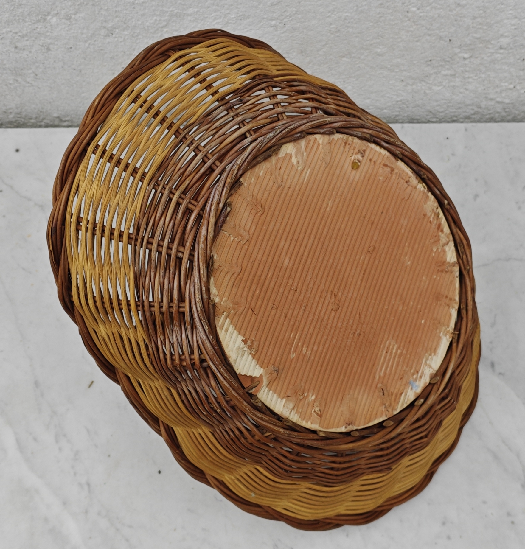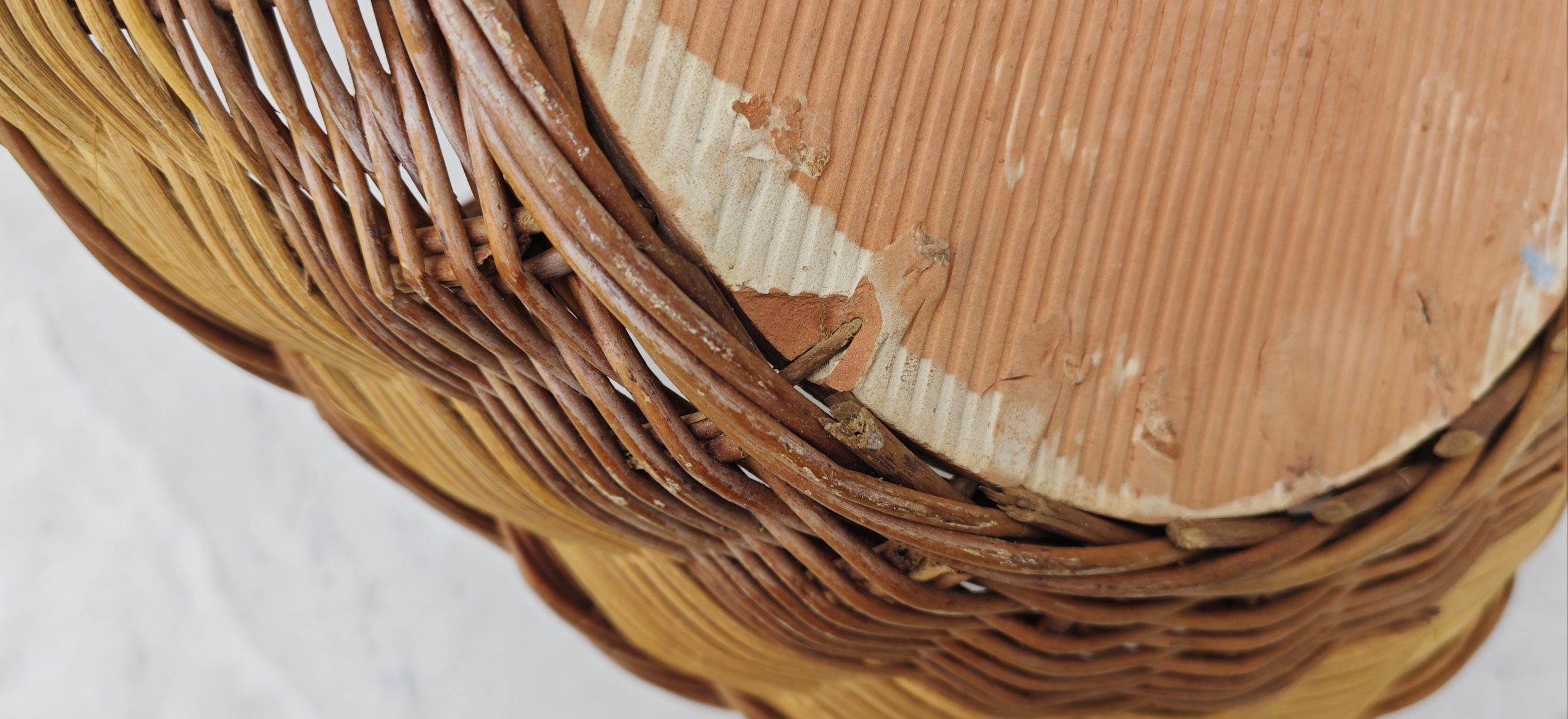 Ce panier bicolore marie harmonieusement l’osier tressé et la terre cuite émaillée.