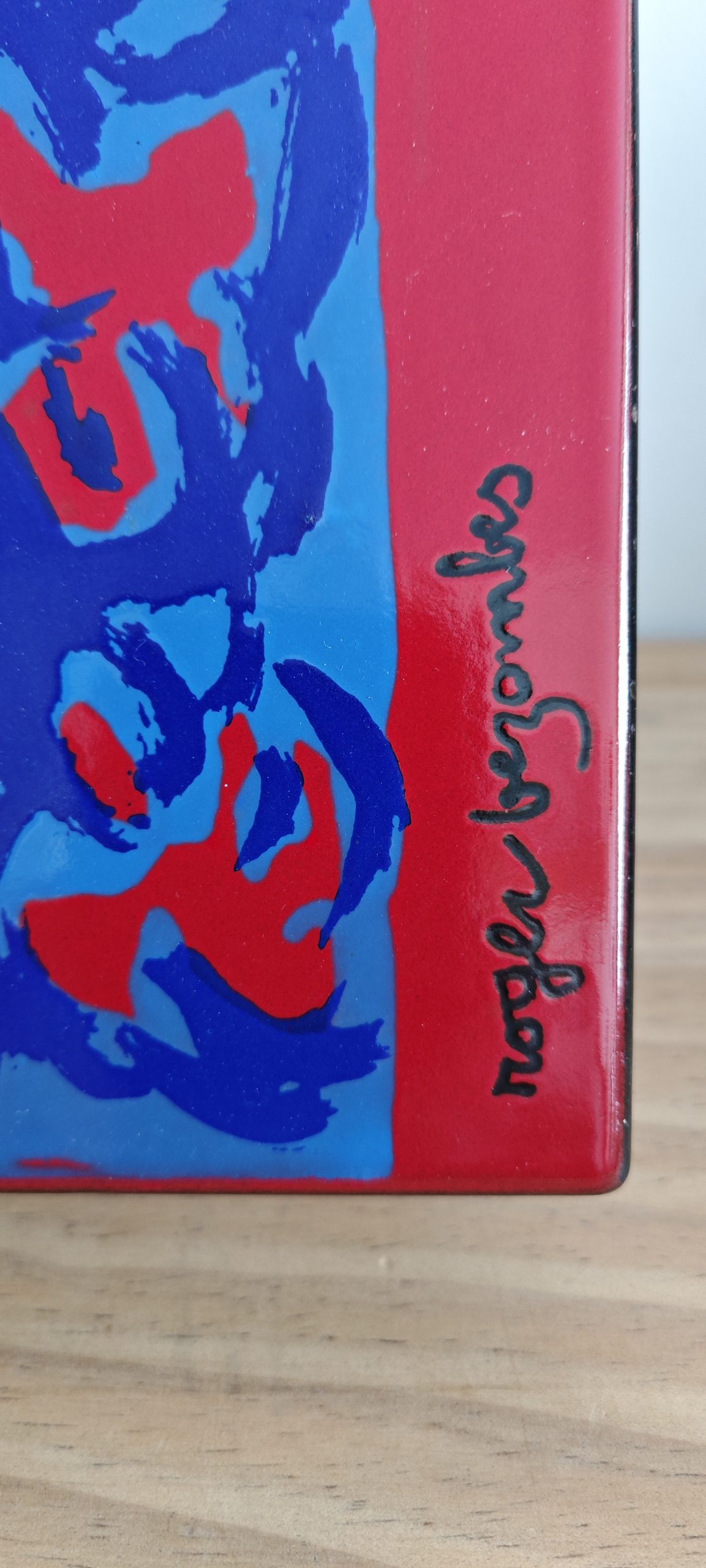 Cette peinture aux couleurs très vives a été réalisée sur plaque en fer émaillée.